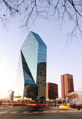 I was tempted to straighten the zebra crossing and make it level, but this picture is also about motion…I love love love this elevation of Fountainplace. Without a doubt, one of my favourite skyscrapers, anywhere.