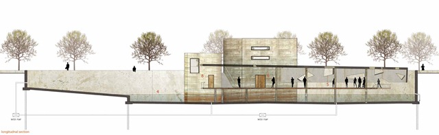 longitudinal section through the LA State Capitol Visitor Center project- one of my favorite drawings- the reference is to our sinking wetlands