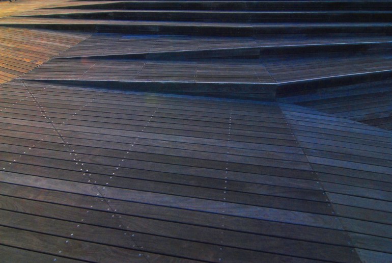The structure is sited so craftily that it seems to emerge from the end of a small peninsula automatically, somewhere losing the distinction between natural and mechanized in its wooden splendor. Attention to detail goes above and beyond the call of duty- even the parking garage is beautifully designed.