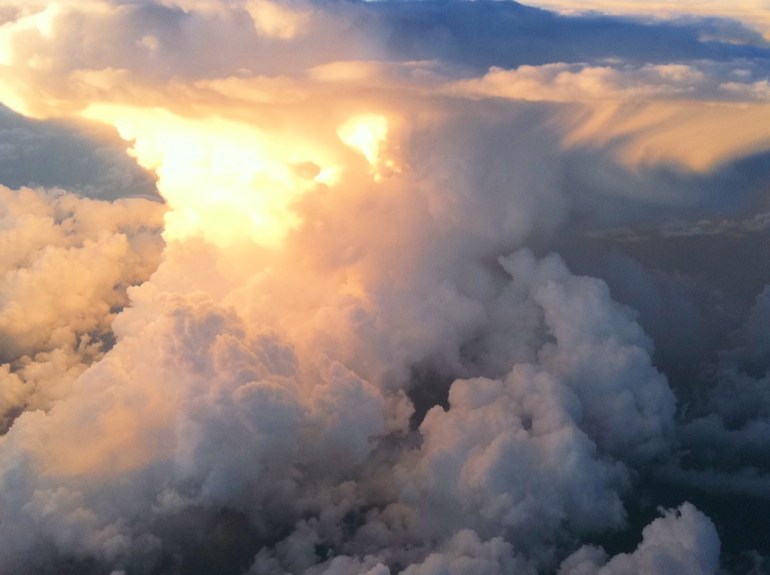 leaving storm clouds behind, flying west at dusk…like flying through a series of the wildest brushstrokes-