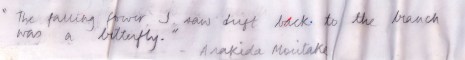 Thank you Maureen, by ‘art from art’ i simply meant that this is art inspired by art…often one medium inspires another for me- almost a synaesthetic response- sometimes words make pictures and pictures make words, or music makes pictures…in this case, I found this beautiful sentence in a poetry book that described a butterfly, falling and it resonated enough for me to paint what i got from it. art, from art!
