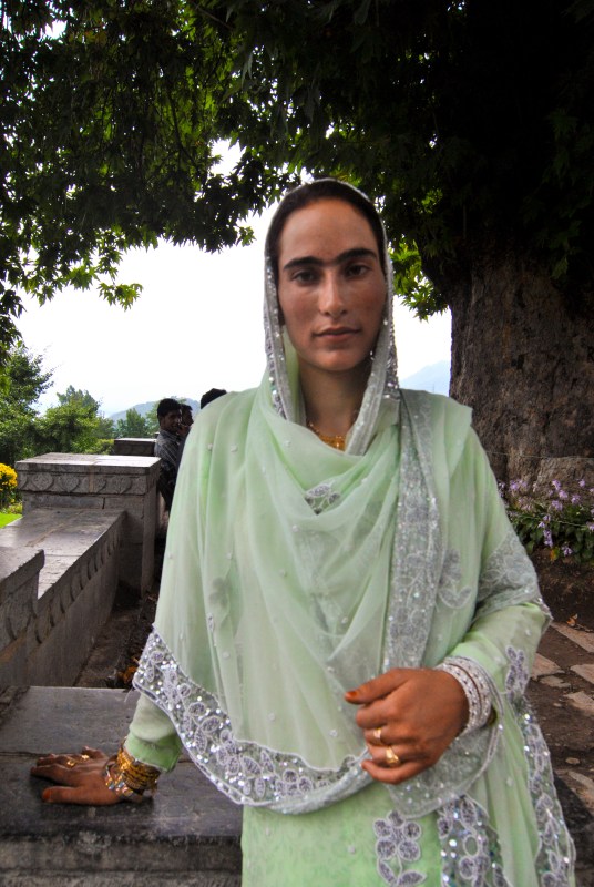 As if out of a Mughal miniature painting…on her honeymoon, hesitant to pose without her new husband, regal in her emerald best. I just hope he realized who he was standing next to.