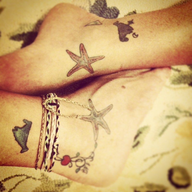 Found a pair of friends with identical place tattoos over dinner on the Vineyard one summer evening. A map of the island and the East Chop Beach Club flag. Inked. Forever!