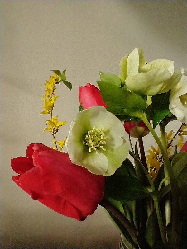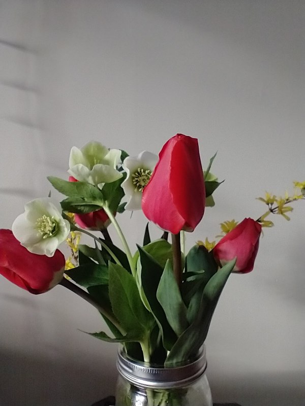 Thanks Kristi! Hellebores from our garden, tulips from a friend..