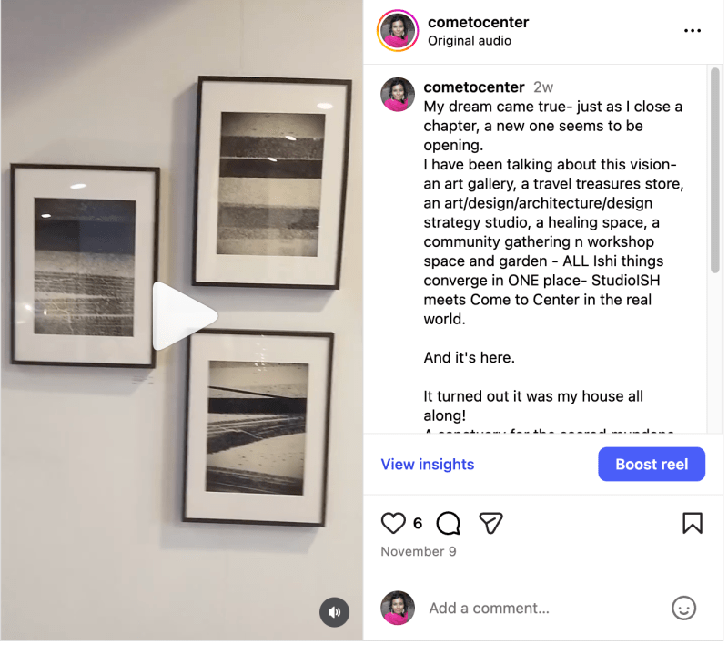 An old dream of mine came true recently- right as I close a chapter, a new one seems to be opening. I have been talking about this vision for years- an art gallery where I sell my art and that of dear friends, a travel treasures store, an art/design/architecture/design strategy studio, a healing space, a community gathering n workshop space and garden – ALL my favourite things converge in ONE place- Studio-ISH meets Come to Center. On the ground, in the real world. Just as we sell it, it turns out it was my house all along!